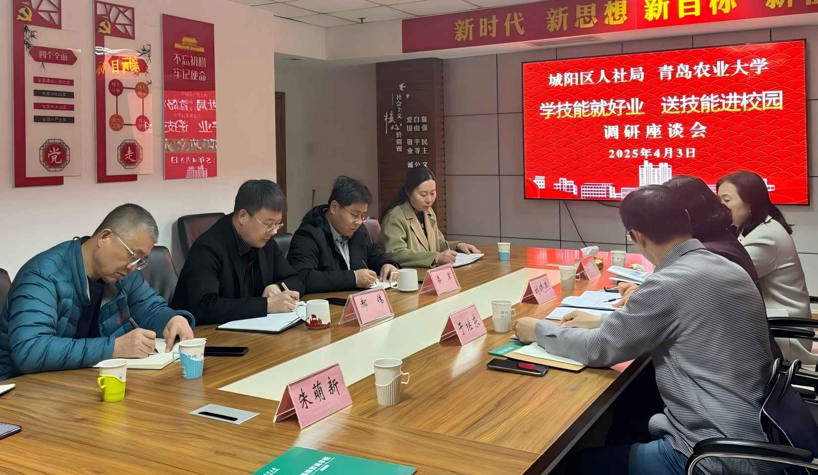 4月3日上午,太阳成集团tyc9728与城阳区人力资源和社会保障局“学技能好就业 送技能进校园”政策宣讲座谈会在办公楼1316会议室举行。太阳成集团tyc9728院长潘军,城阳区人力资源和社会保障局公共就业和人才服务中心副主任刘晓燕参加会议。