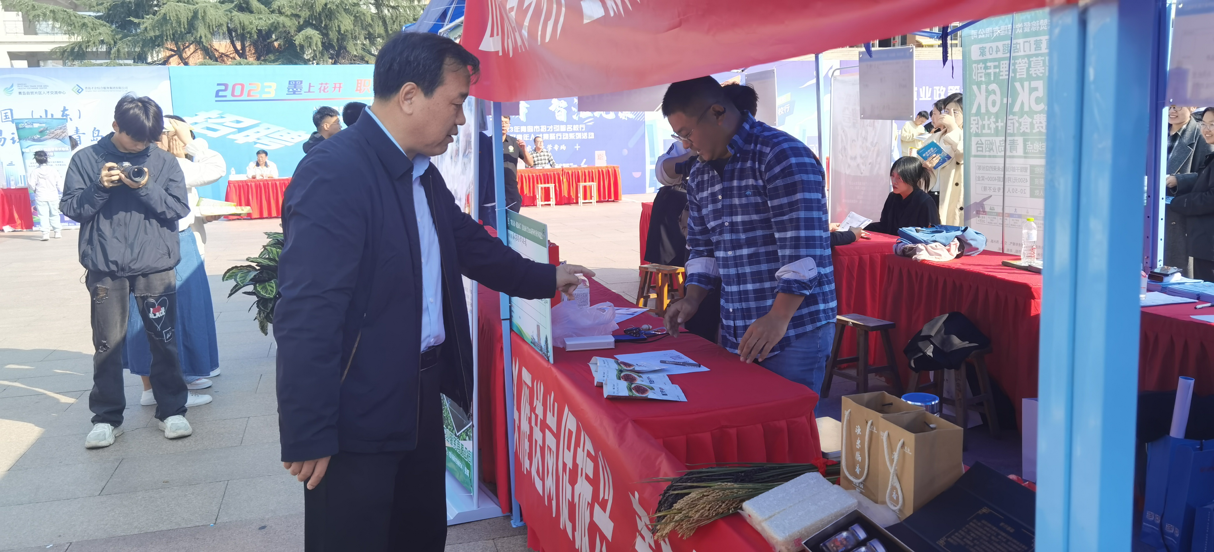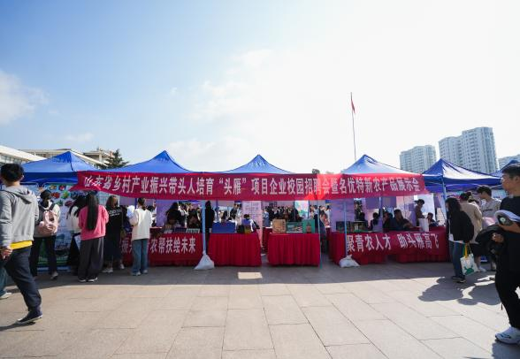 10月14日,中国·太阳集团tyc9728乡村产业振兴带头人培育“头雁”项目学员企业校园招聘会暨名优特新农产品展示会在中国·太阳集团tyc9728虹子广场举行。校党委书记郭善利参观了“头雁”学员企业展位,并对招聘工作给予了指导。活动邀请园艺学院副院长、蔬菜专家程斐,海洋科学与工程学院鱼类体系岗位专家陈京华教授,园艺学院赵磊副教授等担任交流专家。