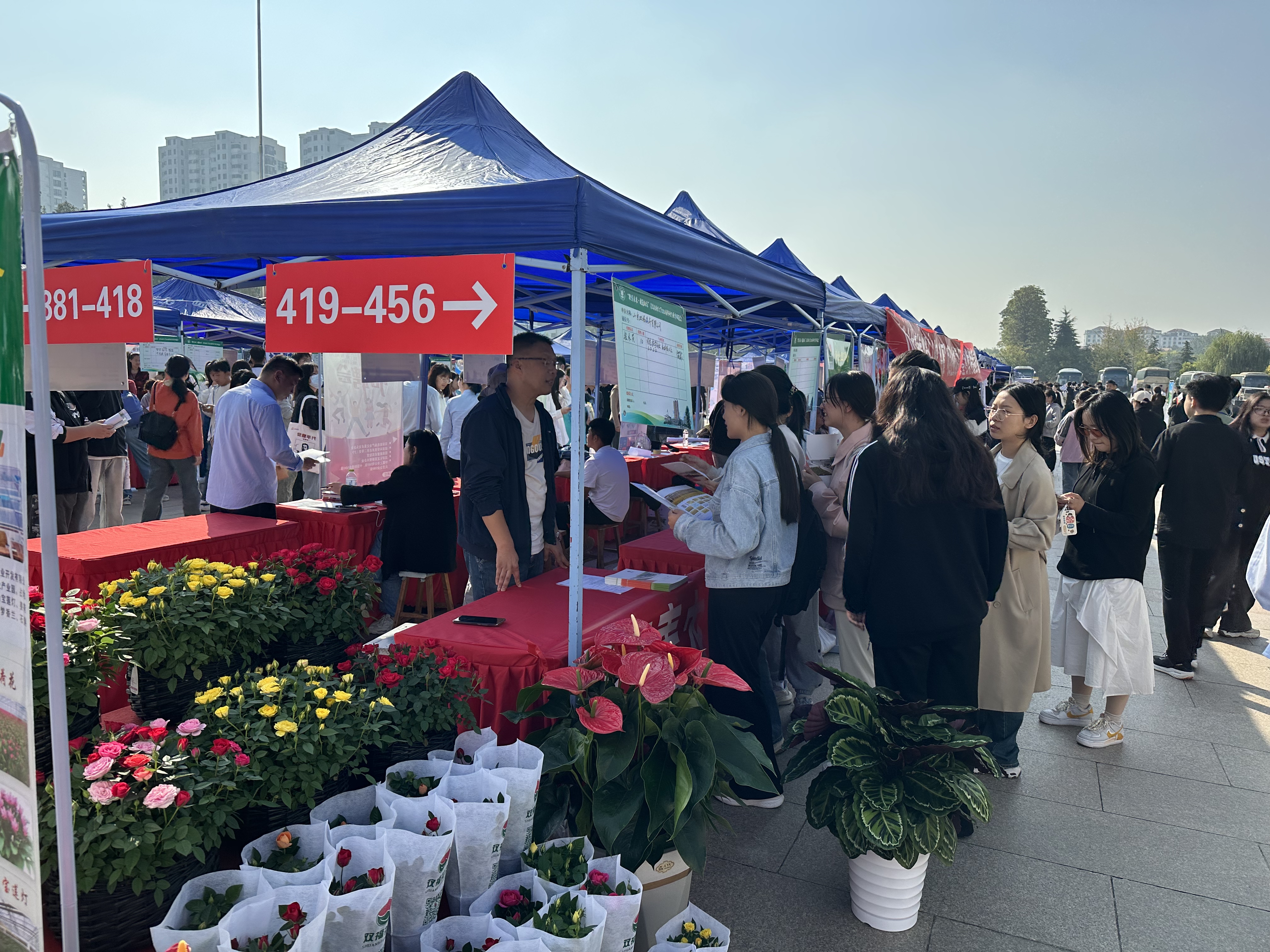“头雁”项目学员企业提供涉及企业管理、技术研发、营销等多种岗位招聘需求。学校提供电子屏滚动播出“头雁”学员企业宣传片,统一制作企业招聘宣传展板、宣传条幅、展位展架等,为“头雁”学员和学子提供面试场地。专家针对企业的需求、学子的意向沟通交流,搭建桥梁。“头雁”企业在招聘的同时,展示企业产品,展示产品有微型月季花、虾酱、无花果干等10余种。青农学子纷至沓来,了解企业,参观产品,投递简历,参展的其他优秀企业也来洽谈业务合作,“头雁”学员与专家、青农学子交流热烈,取得了很好的人才招聘及企业宣传的效果。