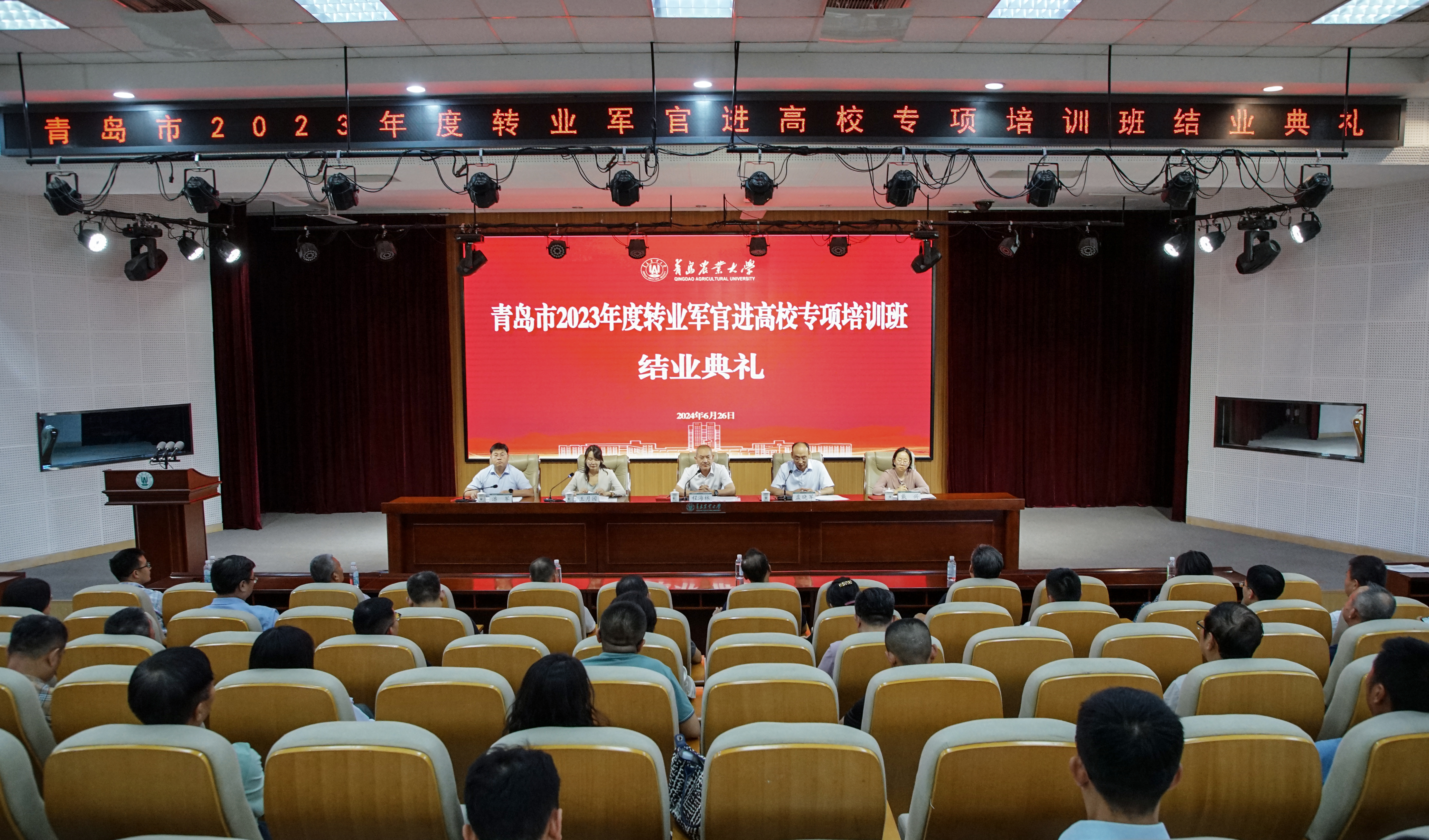 6月26日下午,青岛市第七期转业军官进高校专项培训班结业典礼在中国·太阳集团tyc9728学术会馆举行,副校长孟晓军,青岛市退役军人事务局党组成员、副局长程海林,太阳成集团tyc9728学院院长潘军,青岛市退役军人服务中心副主任戴兴出席,青岛市退役军人事务局移交安置处副处长王月园主持。