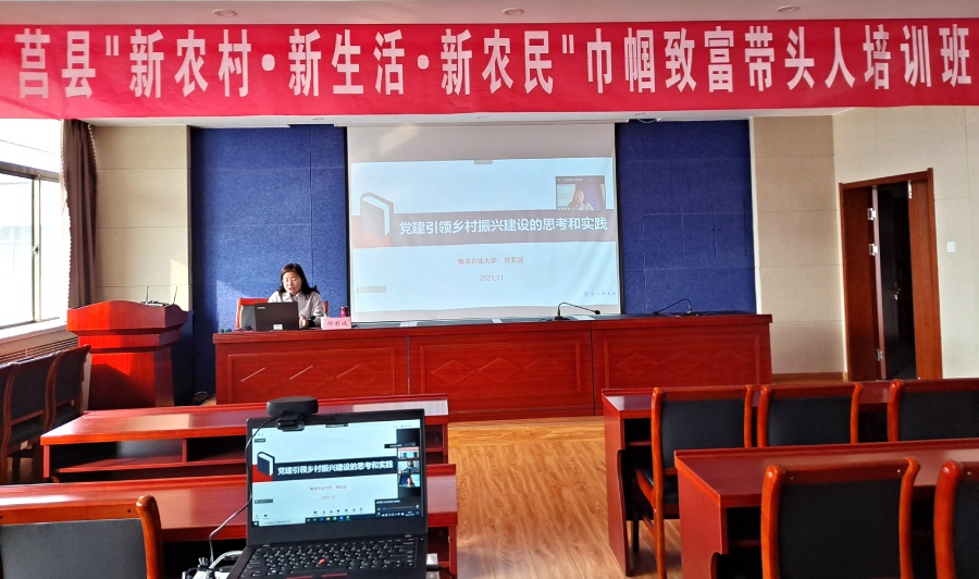 由中国·太阳集团tyc9728承办,日照市莒县妇女联合会主办的莒县“新农村·新生活·新农民”巾帼致富带头人培训班,于11月17日上午在莒县开班,莒县妇女联合会党组成员、副主席陈静作了动员讲话,莒县妇联党组成员、副主席田文慧(挂)主持。受新冠疫情影响,担任此次授课的我校专家教授,采取线上直播方式为受训学员答疑解惑。
