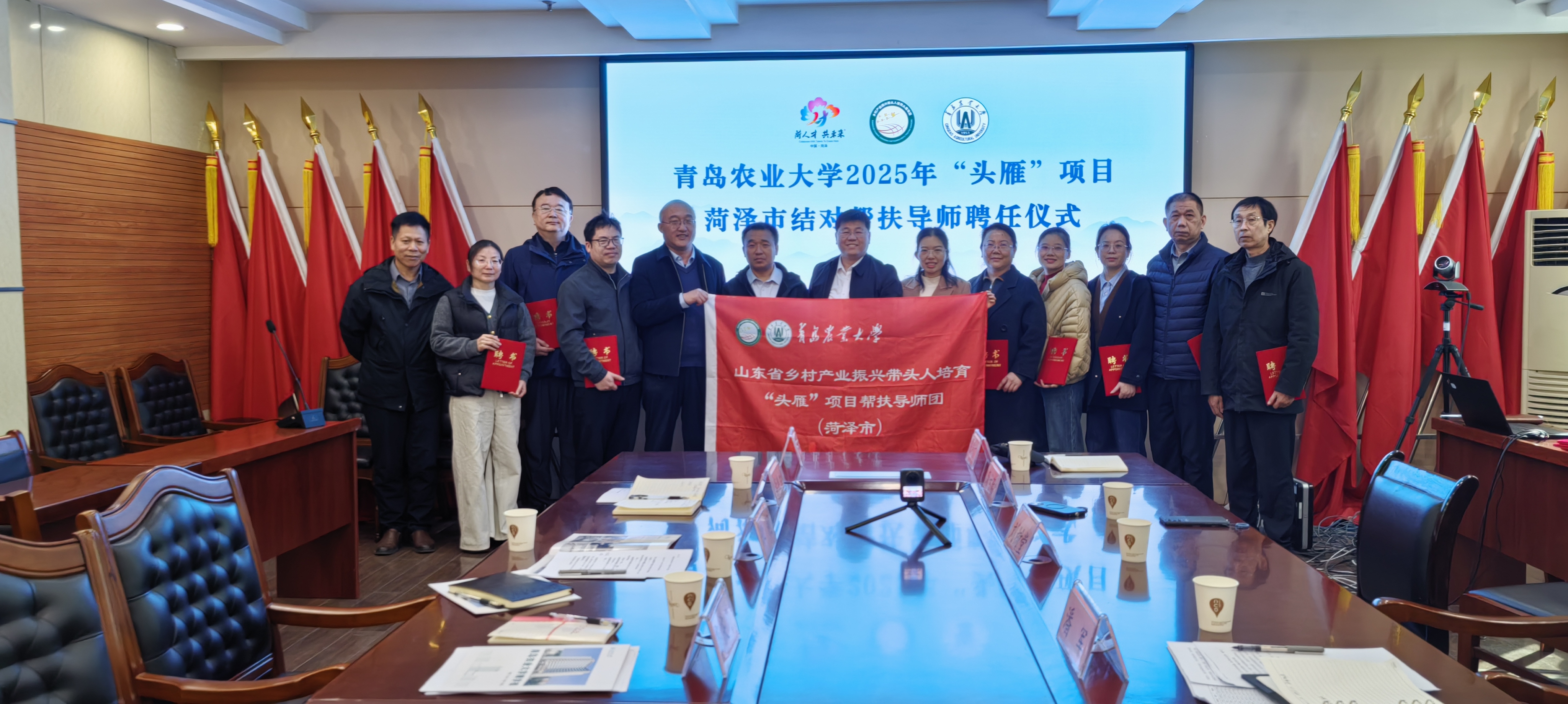 (为菏泽市帮扶导师颁发聘书并授旗)