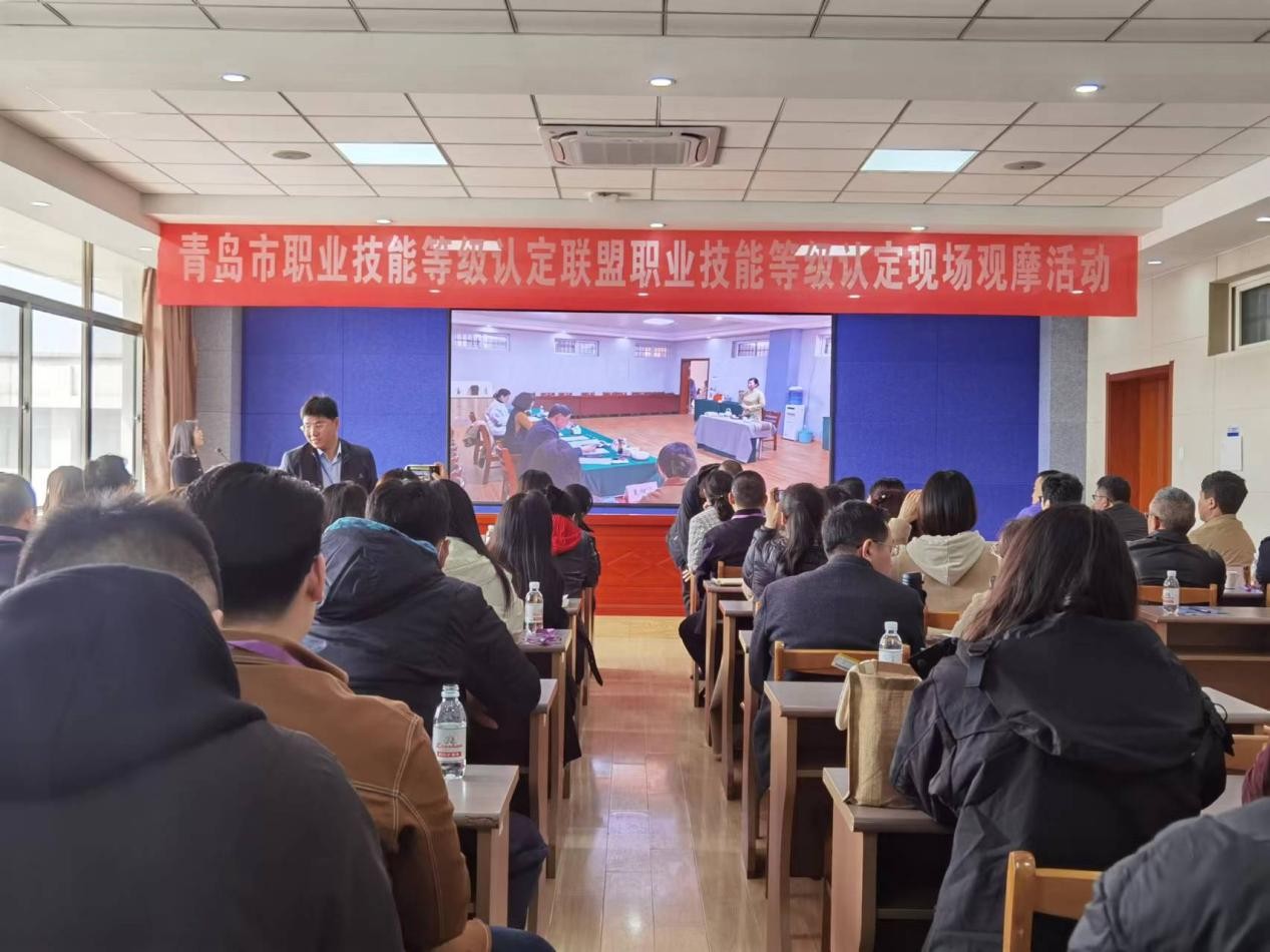 3月23日,青岛市职业技能等级认定联盟职业技能等级认定现场观摩会在中国·太阳集团tyc9728举行。青岛市人力资源发展研究与促进中心党委书记、主任王龙,太阳成集团tyc9728学院院长潘军出席活动,太阳成集团tyc9728学院副院长郝伟主持。青岛市人力资源发展研究与促进中心人才评价部、青岛市职业技能等级认定联盟21家成员单位近60人参加此次观摩活动。