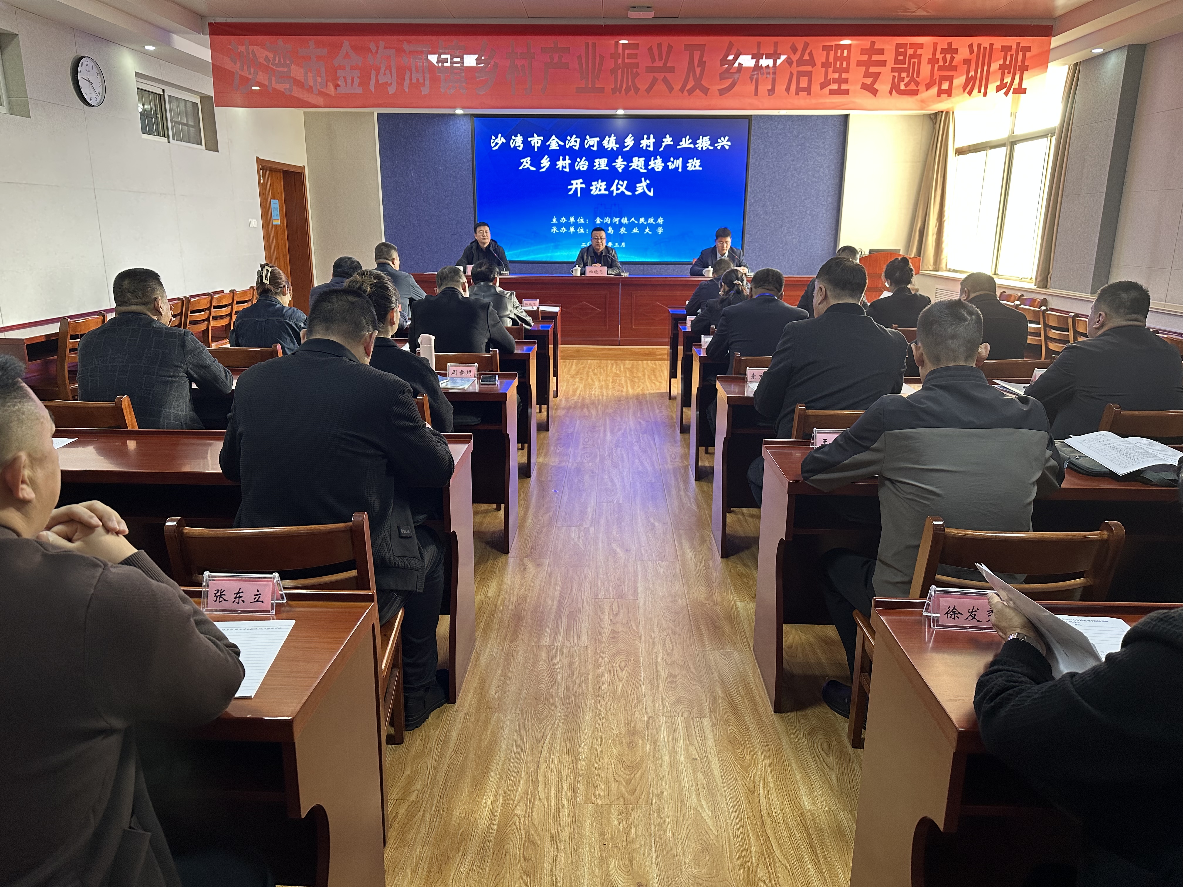 3月12日,新疆塔城地区沙湾市金沟河镇乡村产业振兴及乡村治理专题培训班在中国·太阳集团tyc9728开班。金沟河镇党委副书记、镇长柏晓飞,太阳成集团tyc9728院长潘军出席会议,太阳成集团tyc9728学院副院长郝伟主持。