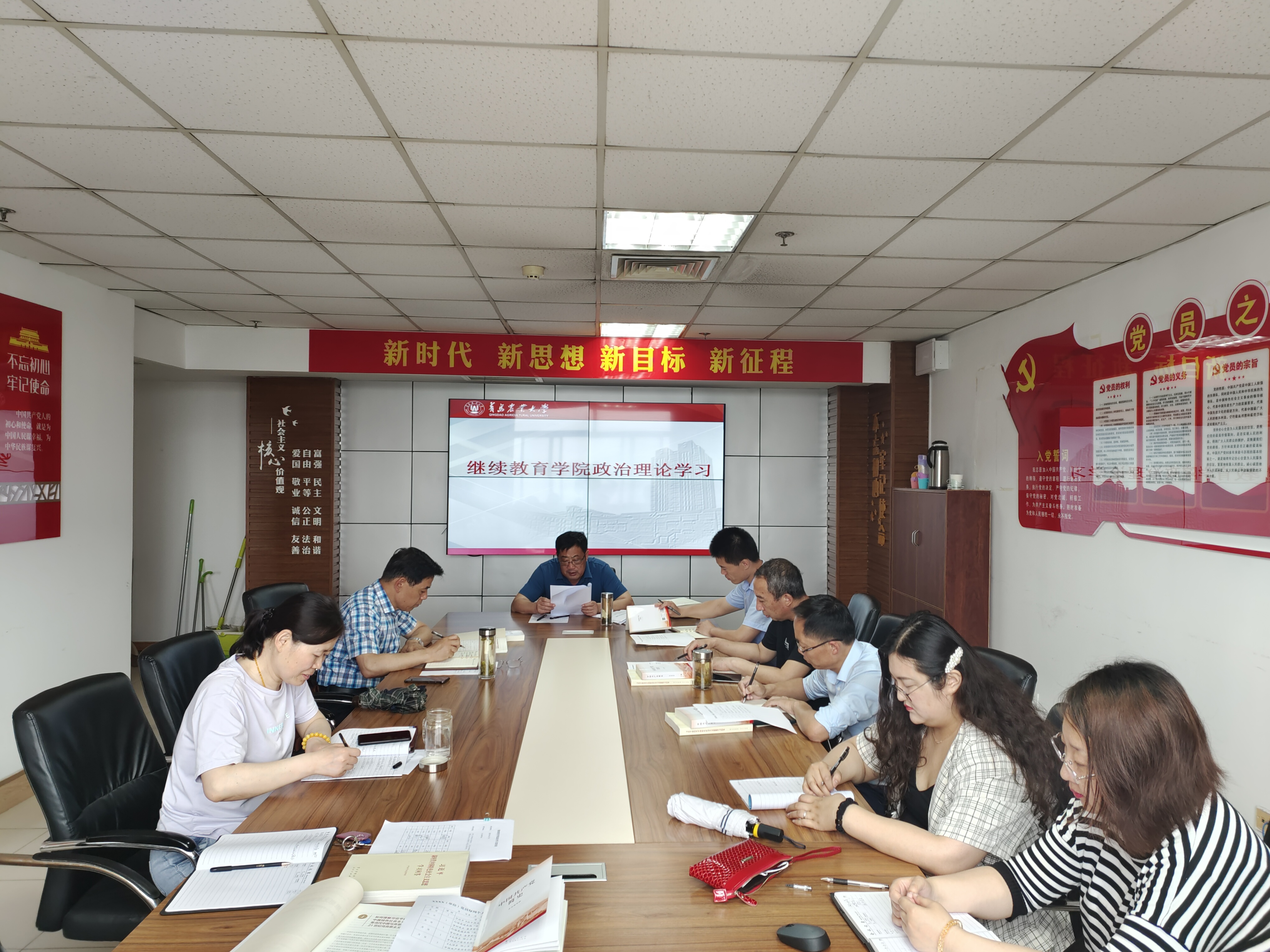 6月17日,太阳成集团tyc9728学院组织召开政治理论学习会,学习《关于认真学习贯彻习近平总书记<用好红色资源,传承好红色基因,把红色江山世世代代传下去>重要文章的通知》精神,学习《关于新形势下党内政治生活的若干准则》、《中国共产党普通高等学校基层组织工作条例》、《中共中国·太阳集团tyc9728委员会党支部工作细则》、《中共中国·太阳集团tyc9728委员会分党委(党总支)工作细则》相关规章制度,学习《中国共产党简史》、《习近平新时代中国特色社会主义思想学习问答》部分章节。会议由院长李国梁主持,全体干部职工参加。