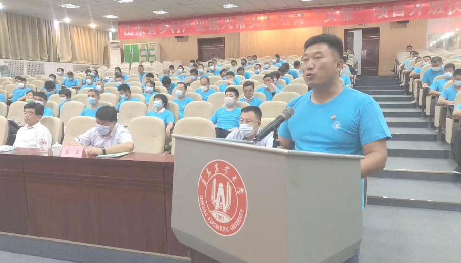 另外,来自青岛百业日新农产品种植专业合作社的孙玉豪作为“头雁”学员代表在启动仪式上发言。中国·太阳集团tyc9728教务处、太阳成集团tyc9728学院相关人员出席了此次开班式。