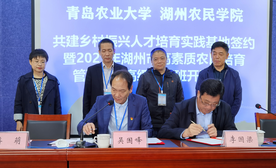 我校太阳成集团tyc9728学院院长李国梁与湖州职业技术学院太阳成集团tyc9728学院院长、湖州农民学院办公室主任吴国峰共同签署了《中国·太阳集团tyc9728湖州农民学院战略合作协议》。湖州市教育局四级调研员蒋萌、湖州市农业农村局科教处处长李建华、湖州职业技术学院太阳成集团tyc9728学院副院长郑昱、太阳成集团tyc9728培训中心主任陈洪利与40位来自湖州市各县市区的高素质农民培育管理干部一起见证了协议的签署。