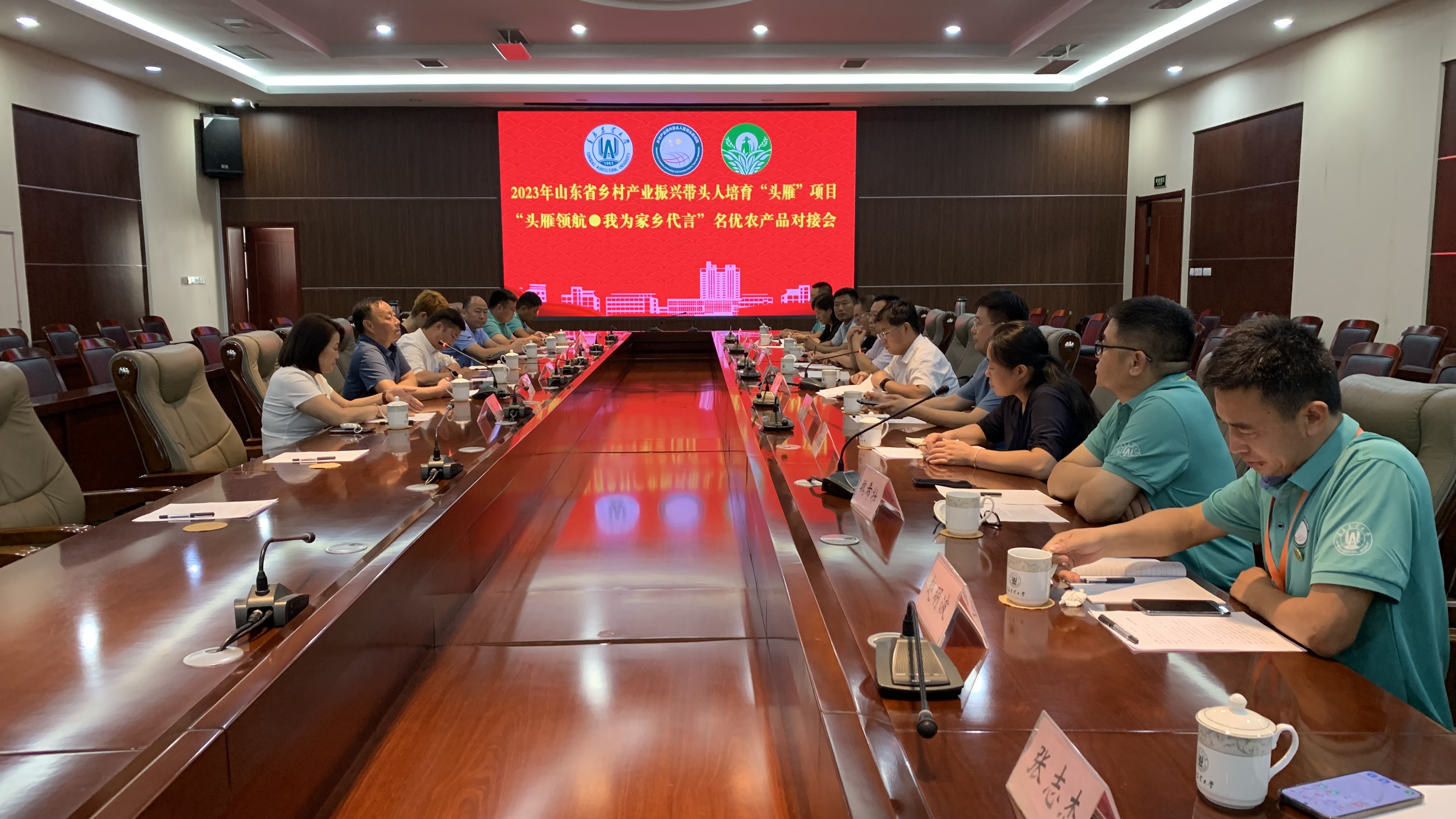 8月16日,“头雁领航 我为家乡代言”名优农产品对接会在中国·太阳集团tyc9728学术会馆会议室举行。中央电视台农科频道“一县一品”项目总策划刘哲、太阳成集团tyc9728院长潘军及相关人员、山东及时菜供应链管理有限公司管理层代表、知名主播“小高同学您好”与“头雁”项目部分学员参加会议。