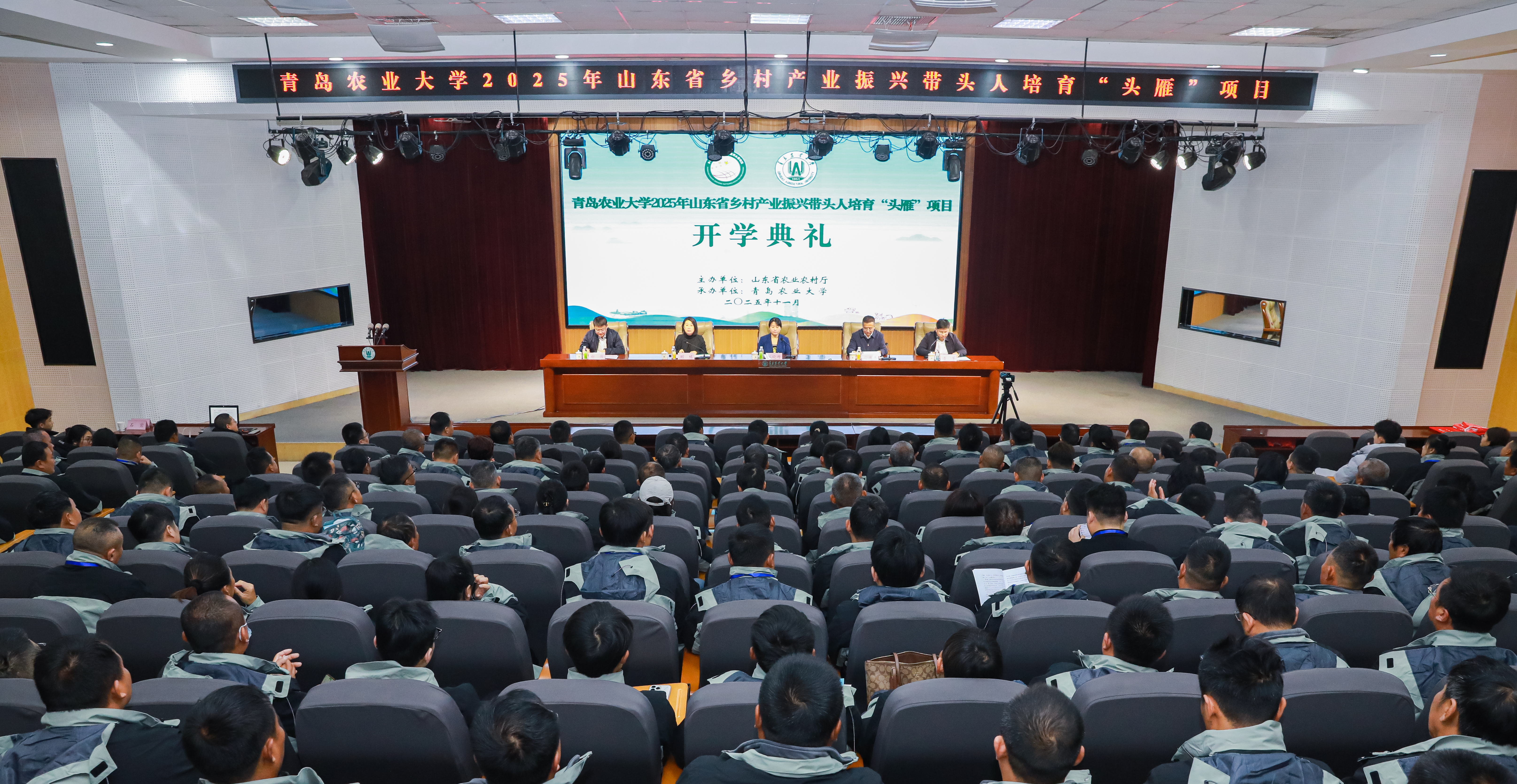 “作为头雁班的一员,我会倍加珍惜在青农的学习时光,通过学校的培育,快速组建起自己的雁阵,带动一片,引领一方,为乡村振兴贡献自己的力量,请领导们放心,请老师们放心!”11月18日上午,231位中国·太阳集团tyc97282025年山东省乡村产业振兴带头人培育“头雁”项目学员的铿锵誓言,拉开了为期一年的沉浸式、孵化式培育。山东省农业农村厅人事处四级调研员丛晓丹,中国·太阳集团tyc9728党委委员、副校长孙庆杰,青岛市农业农村局人事处处长刘栋,太阳成集团tyc9728院长潘军、副院长郝伟出席了开学典礼。