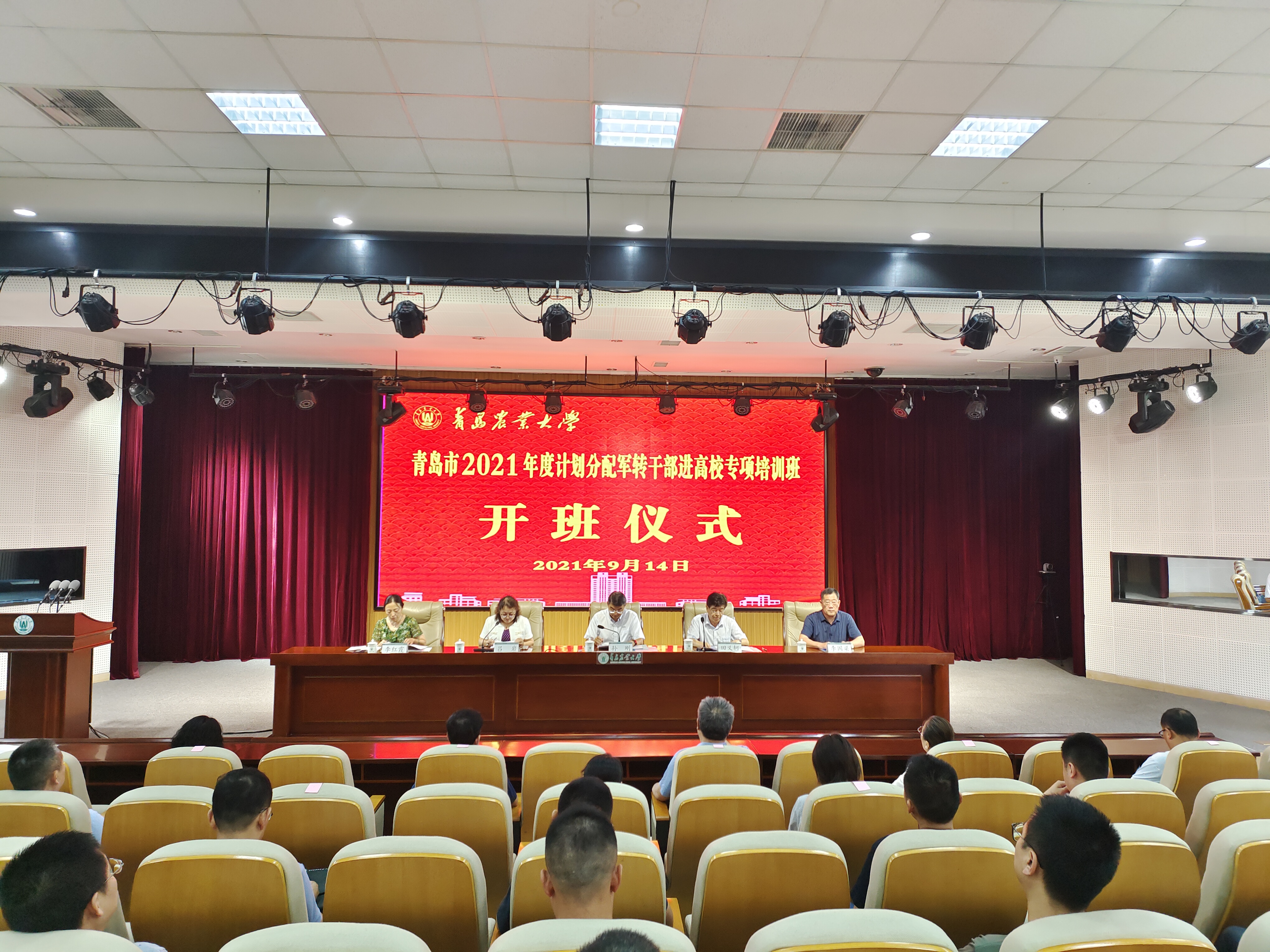 9月14日,青岛市2021年度计划分配军转干部进高校专项培训班开班仪式在我校举行。副校长田义轲,青岛市退役军人事务局副局长孙刚出席开班仪式,仪式由青岛市退役军人事务局移交安置处处长吕岩主持。