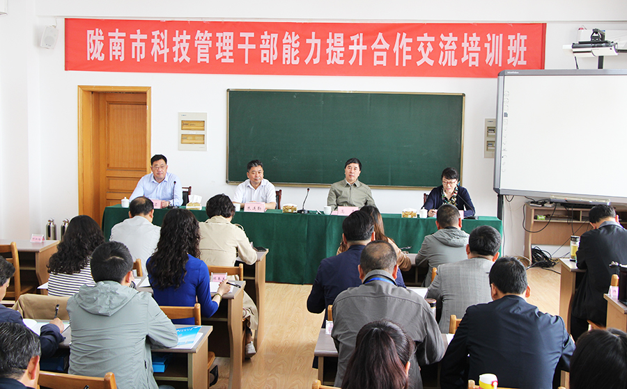 由甘肃省陇南市科技局和青岛市科技局共同主办的“陇南市科技管理干部能力提升合作交流培训班”,于5月27日在我校开班。朱连勤副校长出席开班仪式并致辞,青岛市科技局副巡视员高杰、陇南市科技局局长何红梅在开班仪式上分别讲了话,太阳成集团tyc9728学院院长李国梁主持了开班仪式。