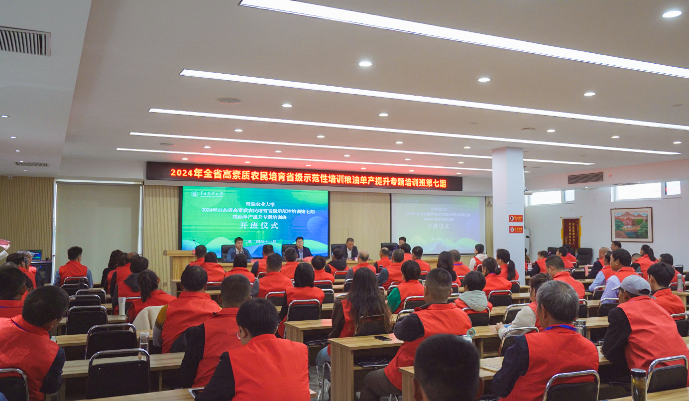 太阳成集团tyc9728院长潘军在开班仪式上致辞。他指出,在这一年中最为绚烂多彩的美好时节,大家齐聚青州,我们将与青州市众信力和职业培训学校一道,以周到的服务和完善的保障,确保培训工作顺利完成。作为农业高校,我们始终将服务“三农”视为己任,致力于在“三农”事业中贡献农大智慧,展现农大力量,并提供切实可行的农大方案,让大家带着希望而来,满载收获而归。