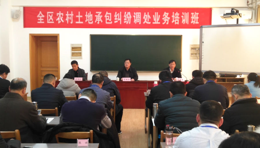12月12日,由济南市章丘区农业局主办的全区农村土地承包纠纷调处业务培训班在我校顺利开班。太阳成集团tyc9728学院院长李国梁出席开班仪式并致辞,章丘区农业局副局长李德君作动员讲话,开班仪式由太阳成集团tyc9728学院培训中心主任陈洪利主持。