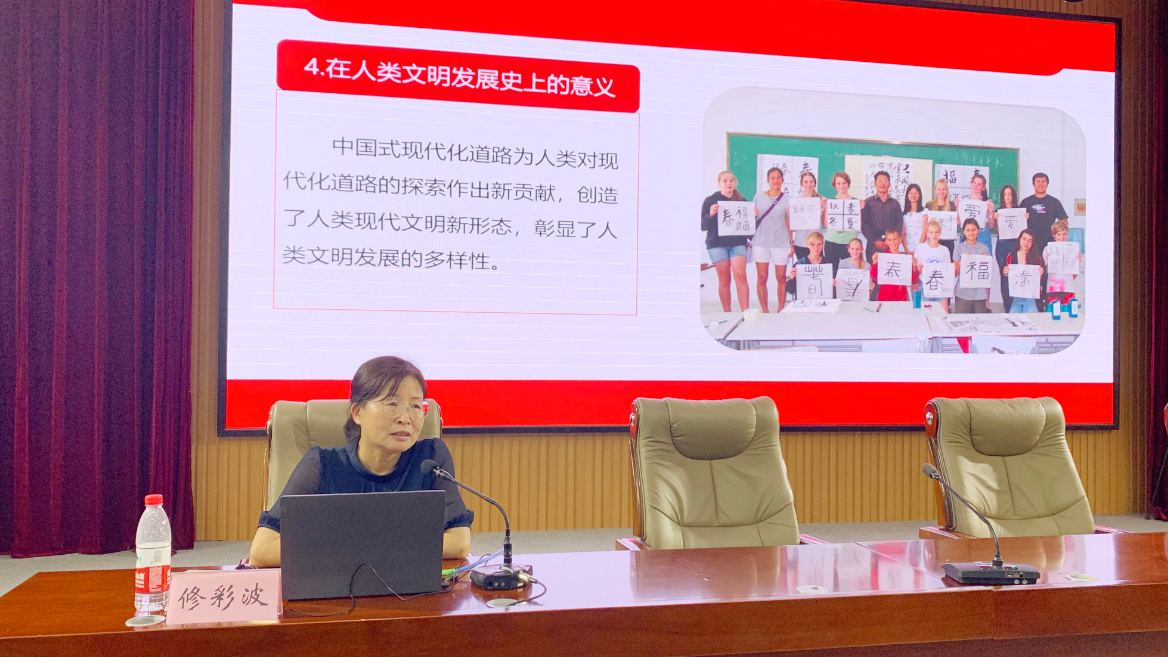 会后,中国·太阳集团tyc9728马克思主义学院党委书记修彩波教授讲授思政课程,以党的二十大报告为引领,对全面推进乡村振兴的国家战略和“三农”相关政策进行了系统介绍和详细解读,从国家乡村振兴战略到打造乡村振兴“齐鲁样板”,再到乡村振兴具体案例,学员们认真听讲,课后带着问题积极讨论,学习氛围浓厚。