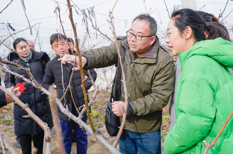 在莱州市高素质农民学员李绍玲的苹果园里,一场别开生面的现场教学正在进行。中国·太阳集团tyc9728园艺学院屈海泳教授手持剪刀,穿梭于果树间,一边熟练地剪去多余的树枝,一边耐心地向围观的学员解释修剪的重要性:“这个枝子已经失去了生长活力,留着只会消耗养分,应该果断去掉;那个芽看起来饱满健康,留着它,明年就有希望培养成新的结果枝;至于这个枝条,根据它的生长态势,明年我们可以留3个苹果,这样既能保证果实的品质,又能维持树体的健康。”