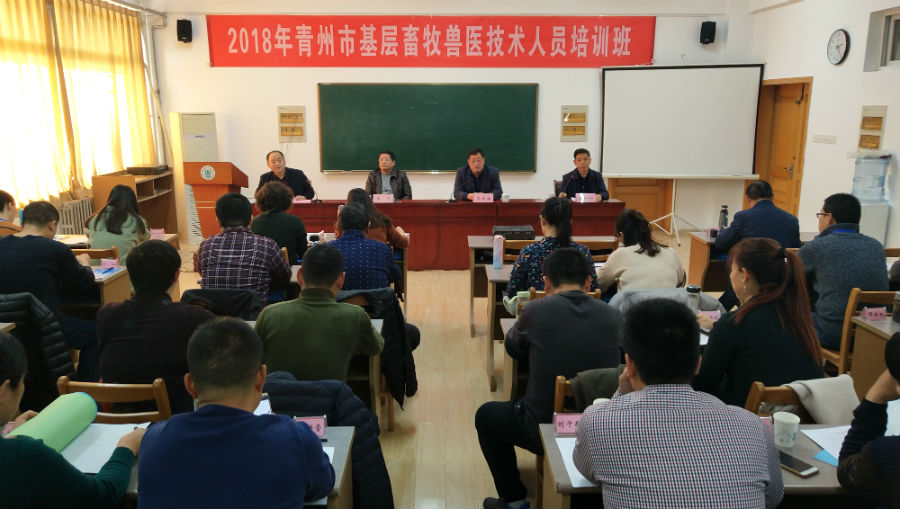 由青州市畜牧局主办的“青州市基层畜牧兽医技术人员培训班”,于11月26日开班。太阳成集团tyc9728学院院长李国梁出席开班仪式并致辞,青州市畜牧局屠宰管理办公室主任赵兴元作开班动员讲话,中国·太阳集团tyc9728动物医学院院长单虎出席开班仪式,并在随后为学员作“现代畜牧业发展趋势”的专题报告,开班仪式由太阳成集团tyc9728学院培训中心主任陈洪利主持。