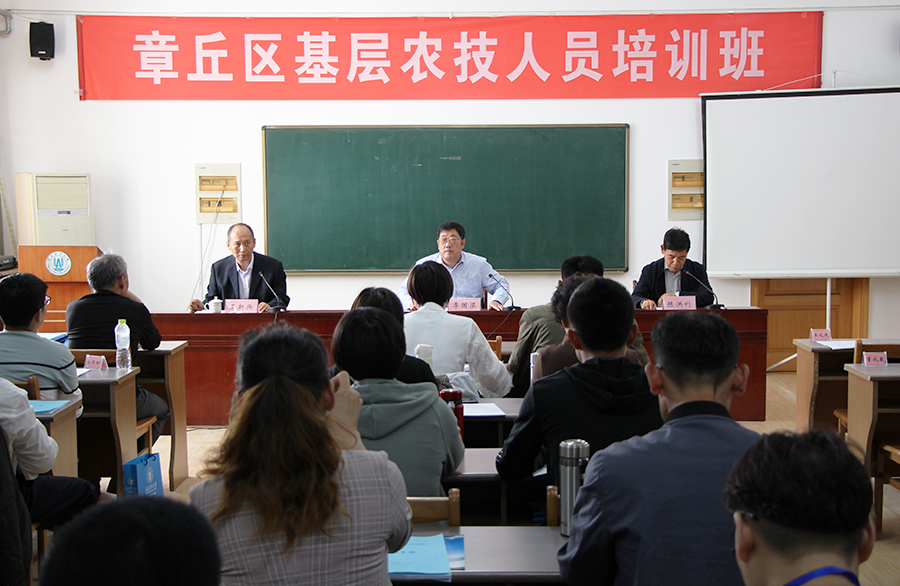 由济南市章丘区蔬菜技术服务中心主办的就“章丘区基层农技人员培训班”,于5月13日下午开班。太阳成集团tyc9728学院院长李国梁出席开班仪式并致辞,章丘区蔬菜技术服务中心副主任王新兴做了动员讲话,太阳成集团tyc9728学院培训中心主任陈洪利主持了开班仪式。