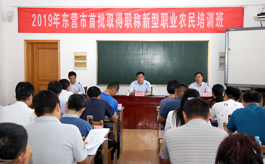 由东营市人力资源社会保障局主办的“2019年东营市首批取得职称新型职业农民培训班”,于6月2日在我校开班。