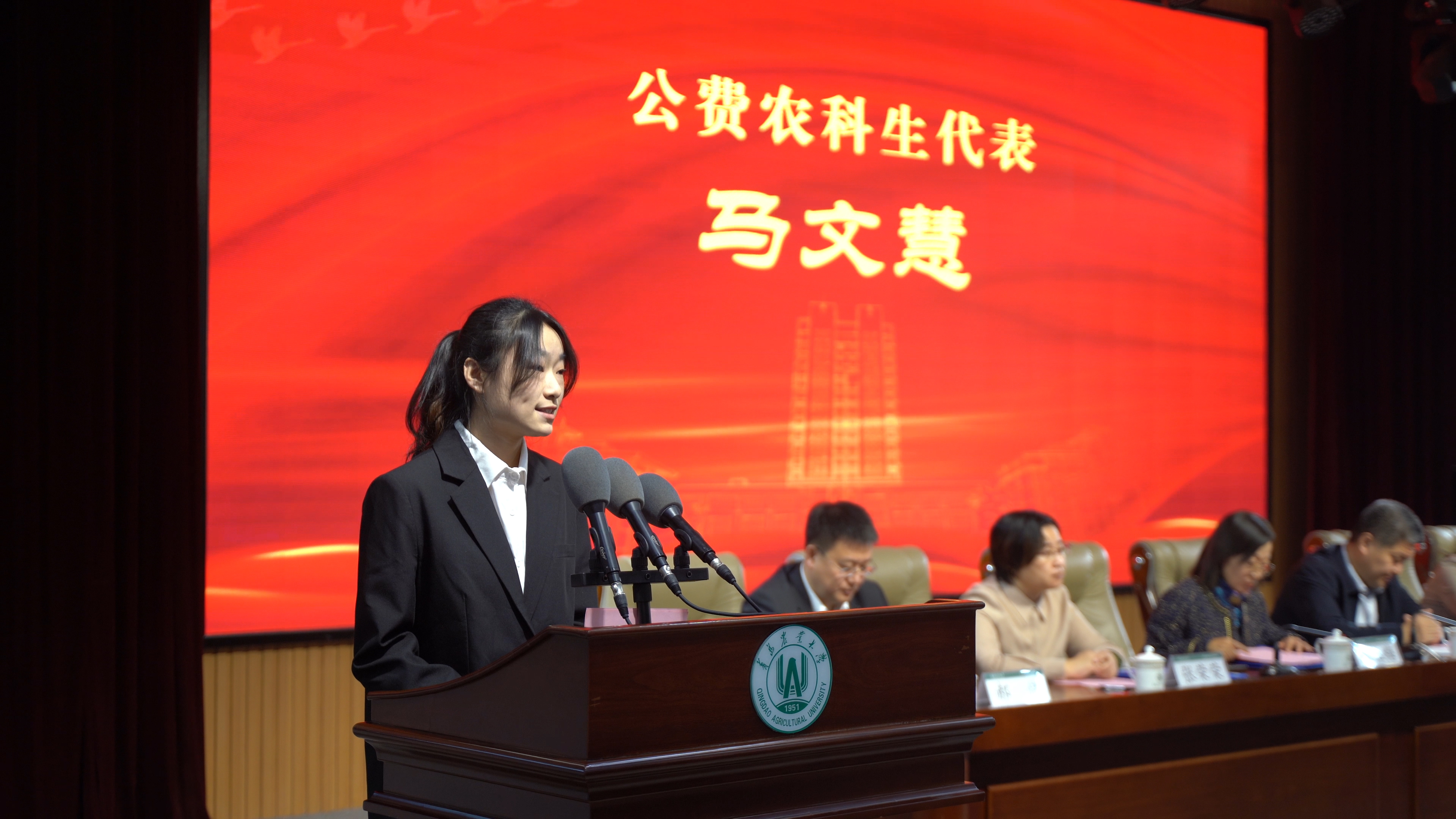 公费农科生代表马文慧讲述了在与“头雁”项目学员融合培育过程中的收获和体会,并表示对于以后的学习和工作有了更为明确的方向。