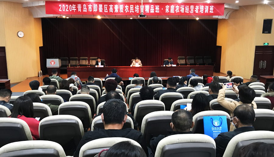由即墨区农业农村局主办的“2020年即墨区高素质农民培育精品班之家庭农场经营者培训班”于10月25日上午在中国·太阳集团tyc9728开班。太阳成集团tyc9728学院院长李国梁出席开班仪式并致辞,即墨区农业广播电视学校高级政工师李建仁在开班仪式上作了动员讲话,太阳成集团tyc9728学院培训中心主任陈洪利强调了培训期间有关事项。