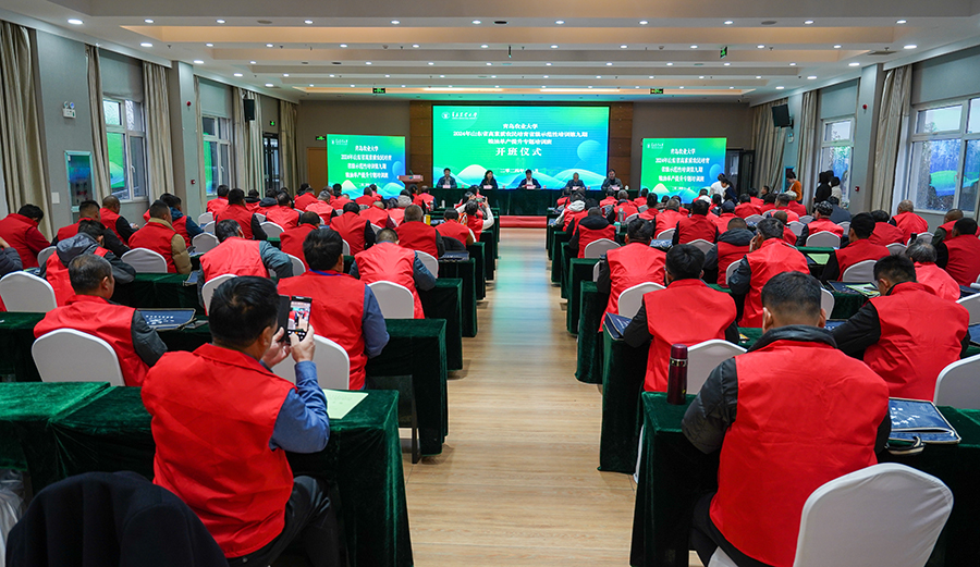开班仪式上,潘军为学员代表佩戴了校徽,他表示,戴上校徽就成为了一名青岛农大人,青岛农大将成为你们坚强的后盾,为你们提供丰富的资源、优质的师资和广阔的平台,助力你们产业提升,追求卓越。